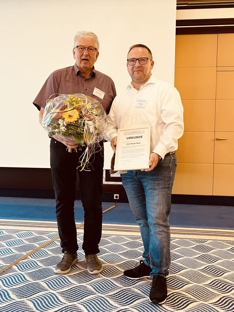 Die Mitgliederversammlung bot zudem Anlass für wichtige Weichenstellungen im Verband. Hans Martin Ruof wurde für seine langjährigen Verdienste zum Ehrenmitglied ernannt. Die Vorstandsmitglieder Alexander Hildebrand und Roger Pfeiffer wurden mit großem Zuspruch für drei weitere Jahre in ihrem Amt bestätigt.
